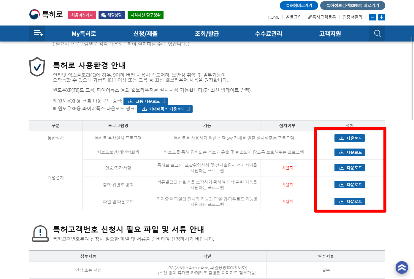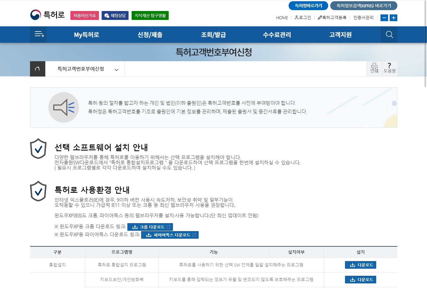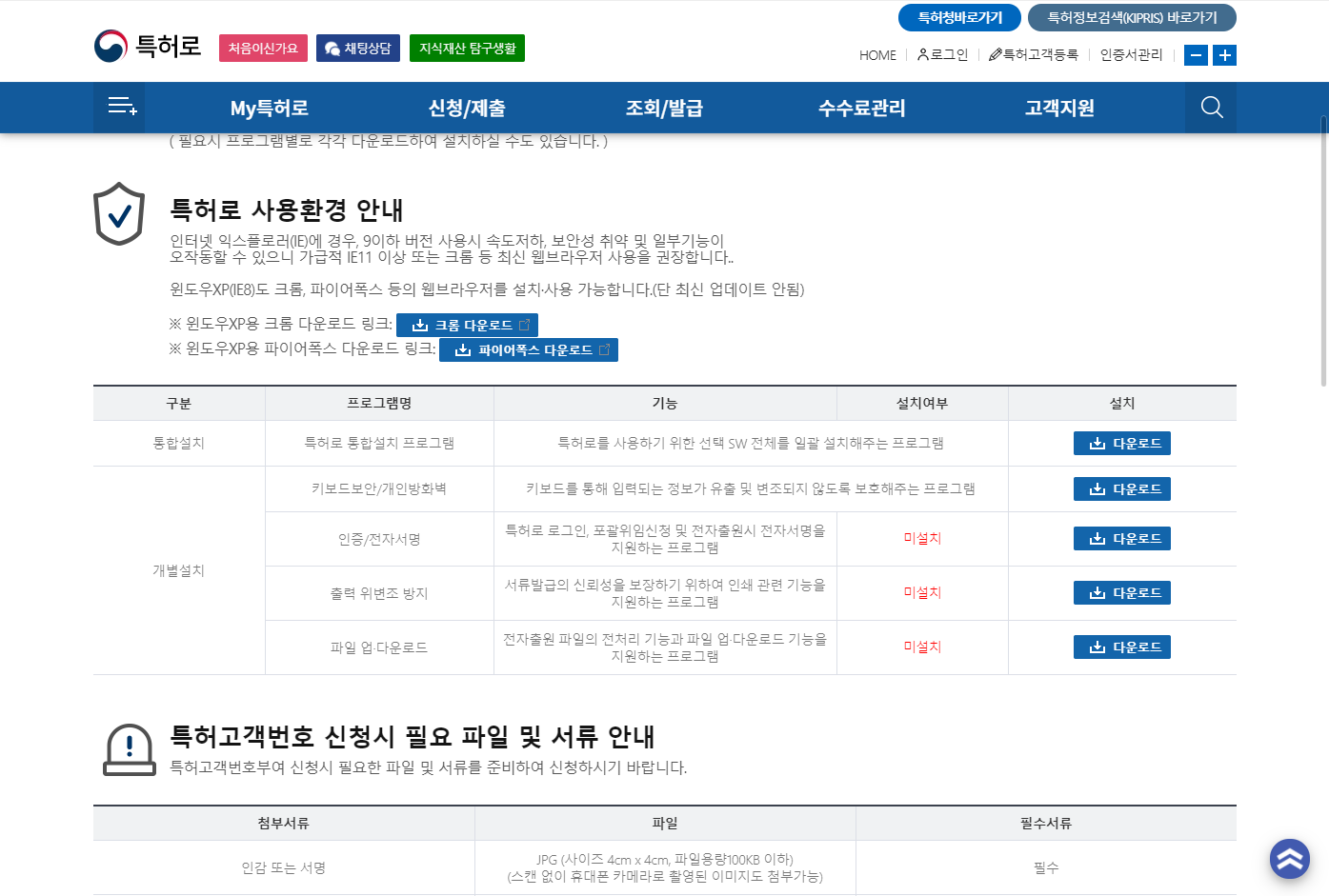 - 특허로 보안프로그램 설치파일 다운로드 페이지