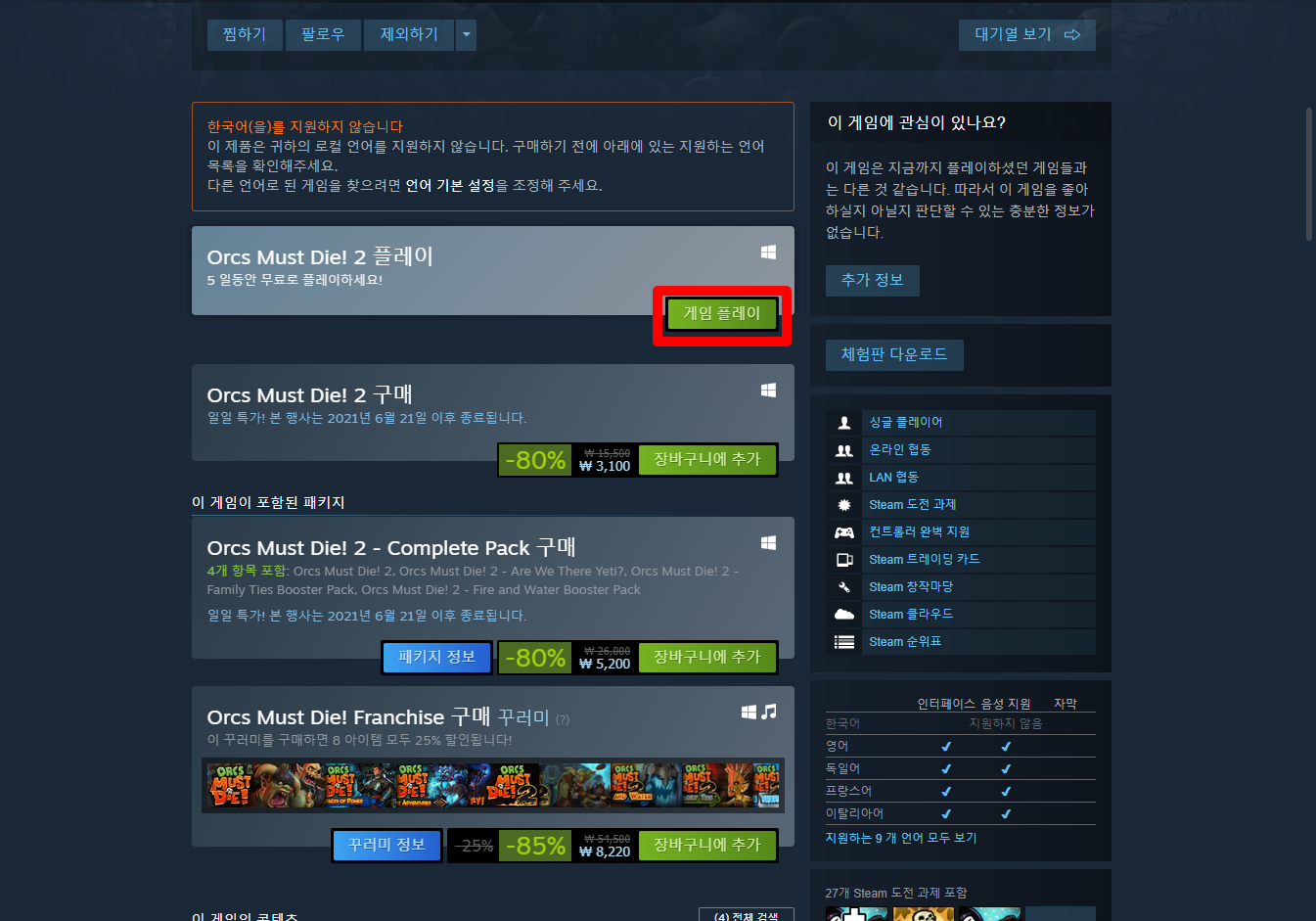 게임페이지를 조금 내려서 [게임 플레이] 버튼을 클릭하면 됩니다.