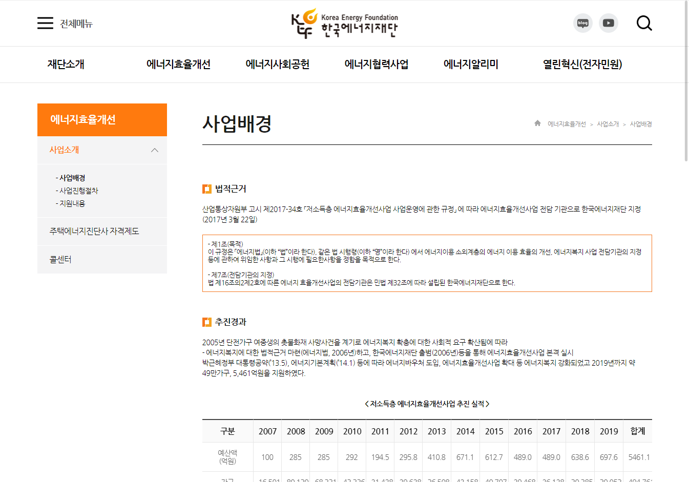 저소득층의 단열, 창호공사 등 에너지 사용 환경을 개선하는 사업