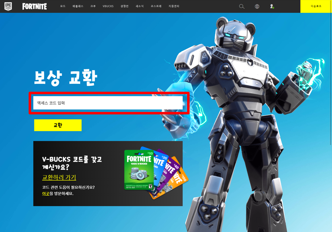 FORTNITE REDEEM 포트나이트 리딤 페이지