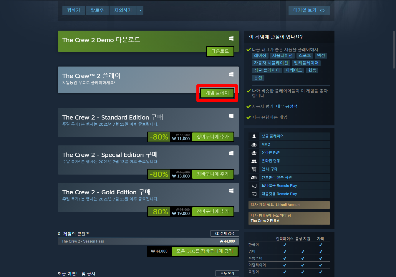 The Crew™ 2 더크루2- Steam 스팀 금주 무료 플레이 Play for Free weekend on Steam 스팀