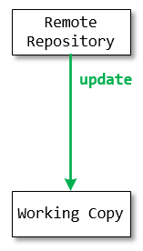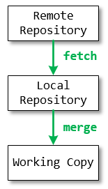 Git의 내려받기 원격저장소부터 내려 받아(fetch)와 로컬저장소와 작업공간을 병합 (merge)합니다. ![]() SVN의 update 동일하게 pull 명령어로 원격 저장소로 부터 내려받아 작업공간을 병합합니다. ![]() |