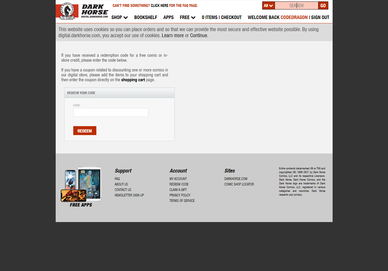 Dark Horse Comics 다크 호스 코믹스 리딤코드 Redeem Code 사용하기 - darkhorse