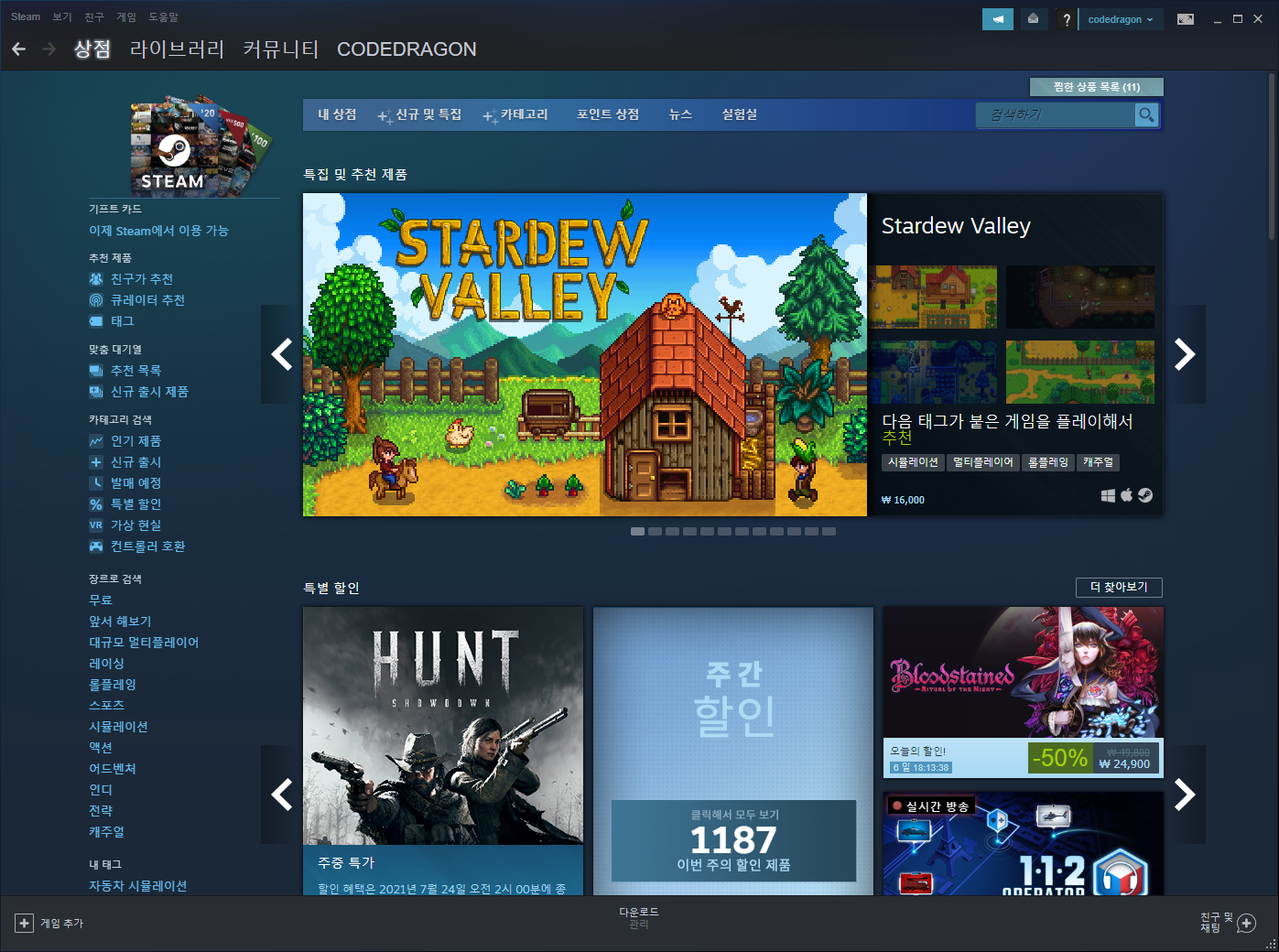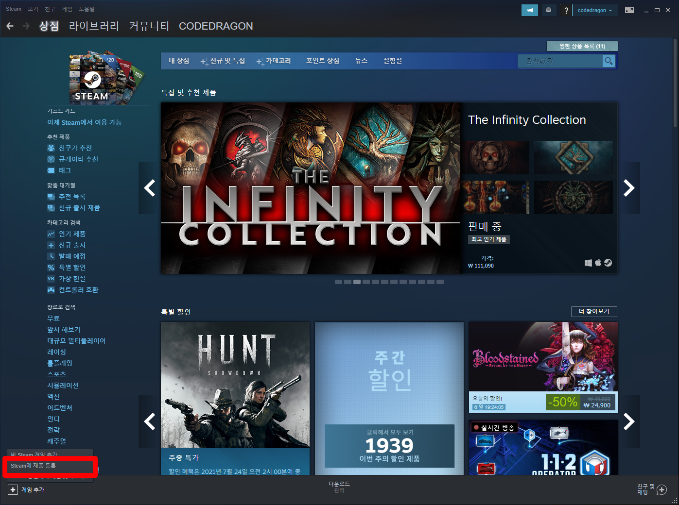 나오는 메뉴에서 [Steam에 제품 등록]을 클릭합니다.