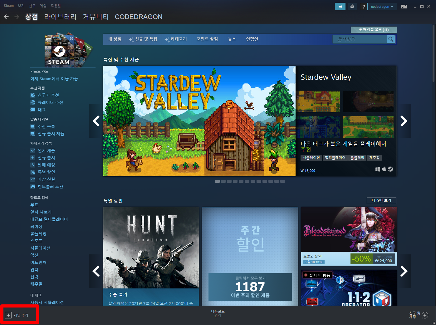 좌측하단의 [+ 게임추가] 클릭합니다.