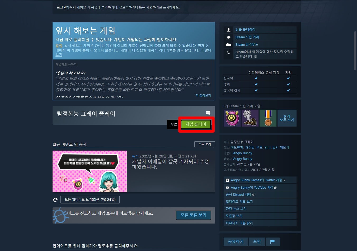 - "탐정본능 그레이" 게임 페이지 - Steam 스팀
