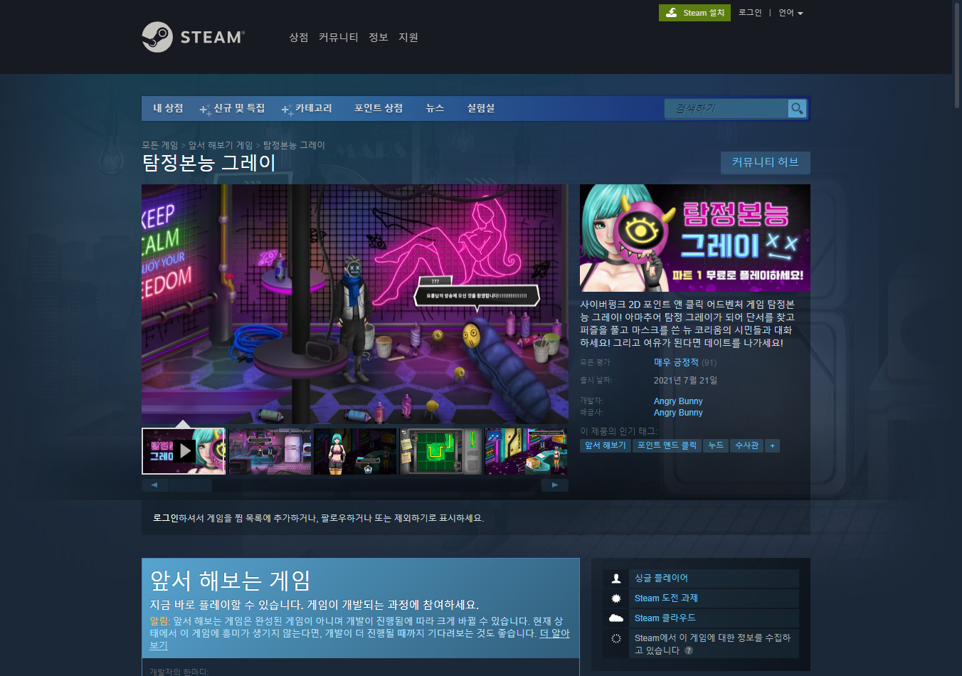 "탐정본능 그레이" 게임 페이지 - Steam 스팀