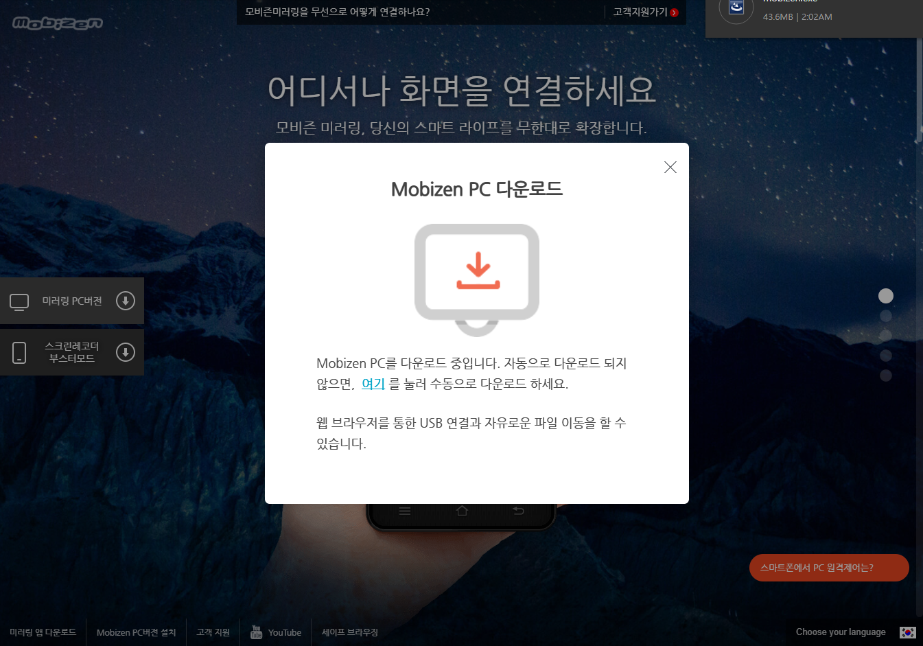 왼쪽의 버튼을 클릭하면 설치파일이 다운로드됩니다.