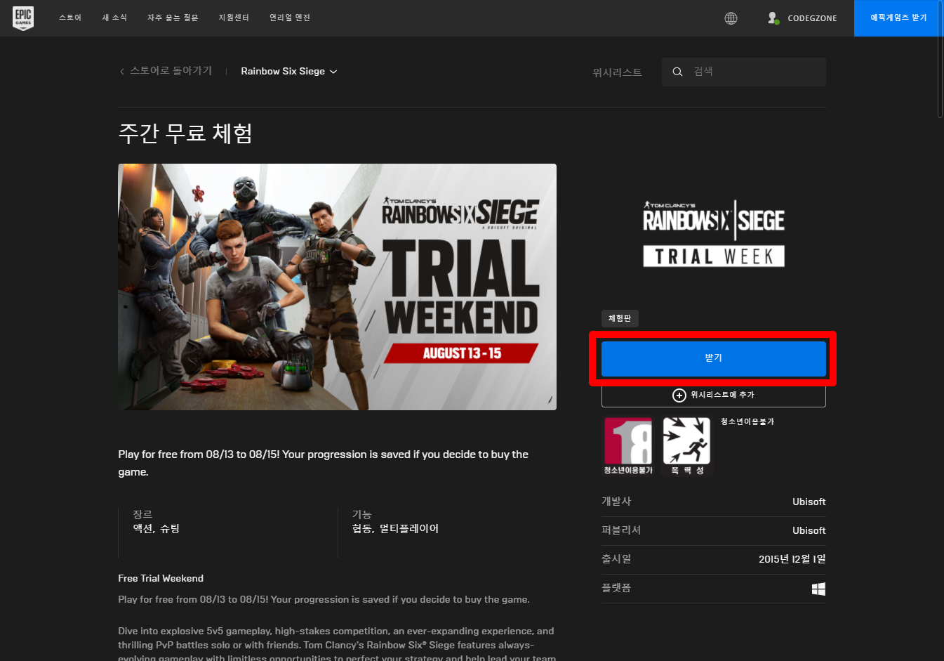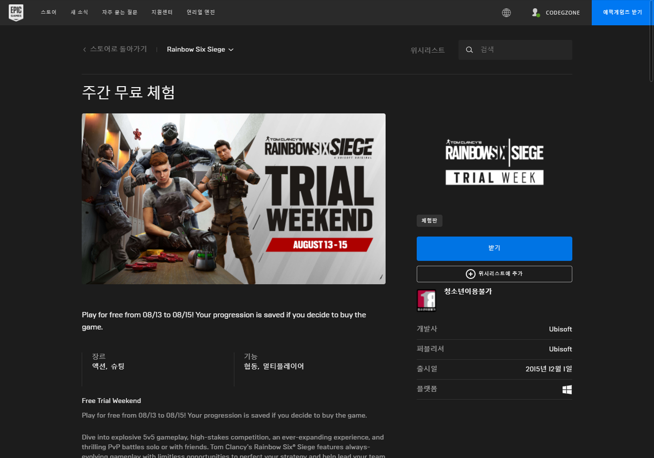 Tom Clancy's Rainbow Six Siege 톰 클랜시의 레인보우 식스 시즈 Play for Free weekend on Epic 에픽, Ubisoft 유비소프트 금주 무료 플레이