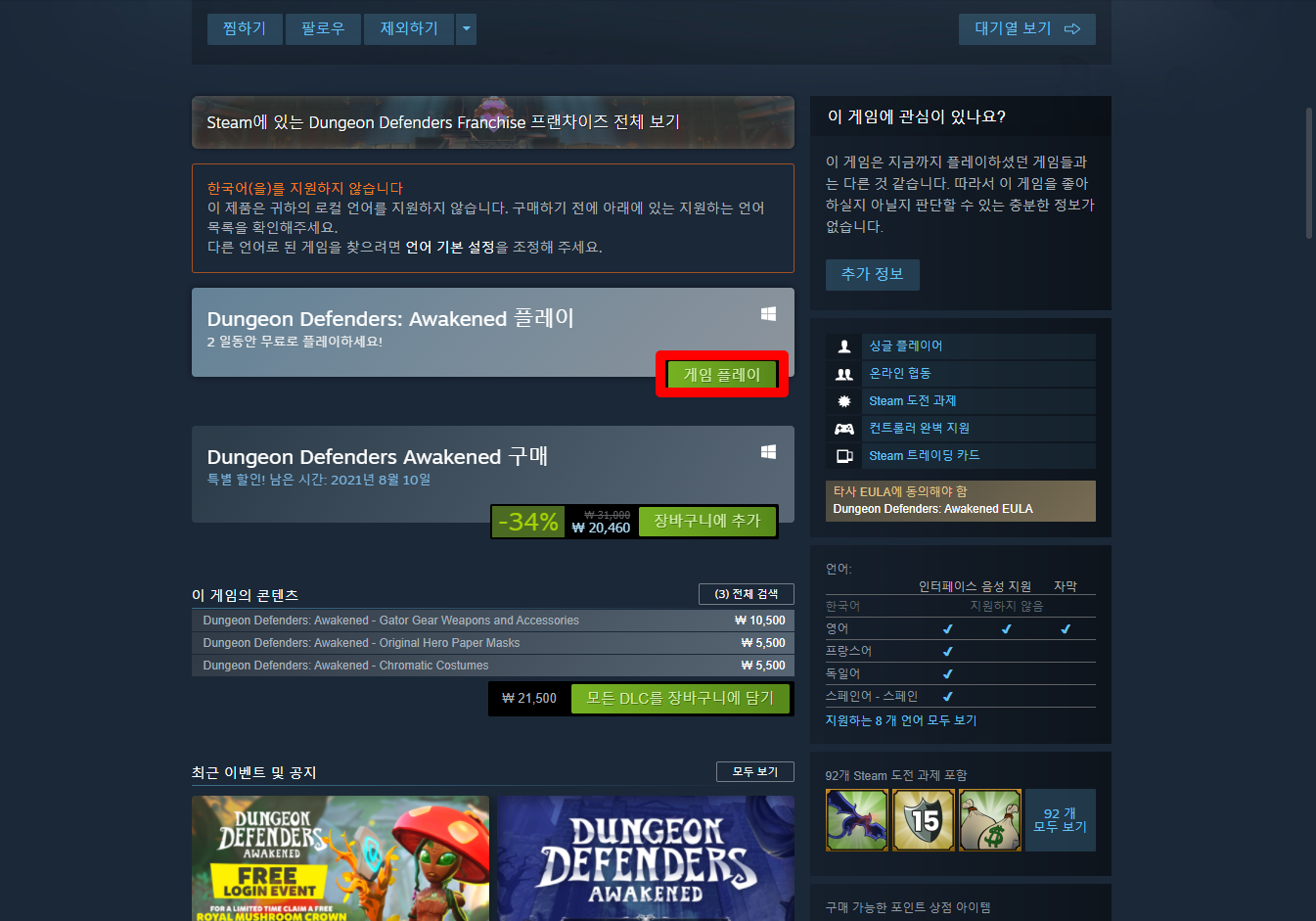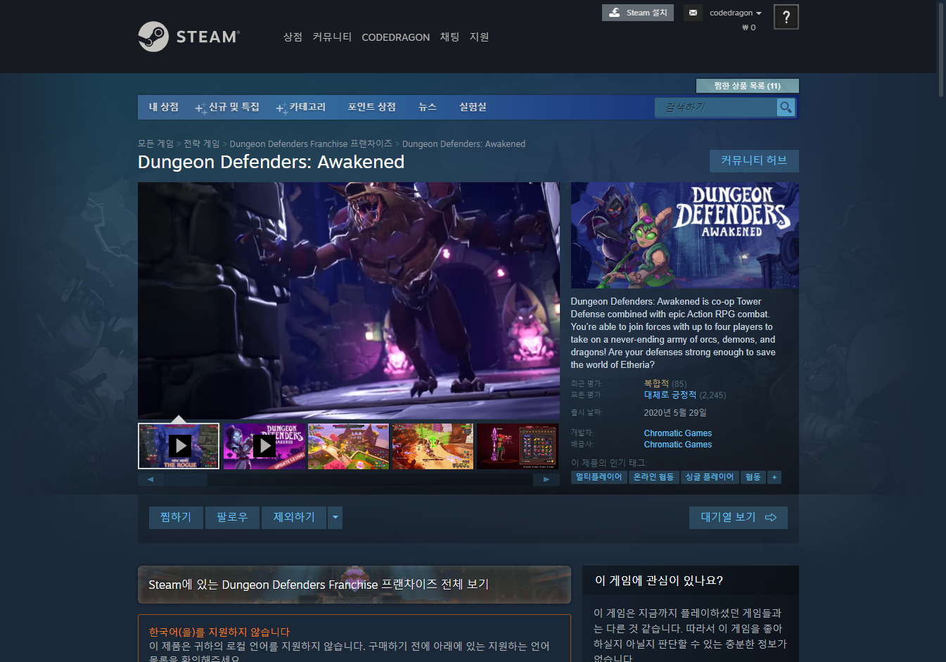 Dungeon Defenders: Awakened 게임 페이지
