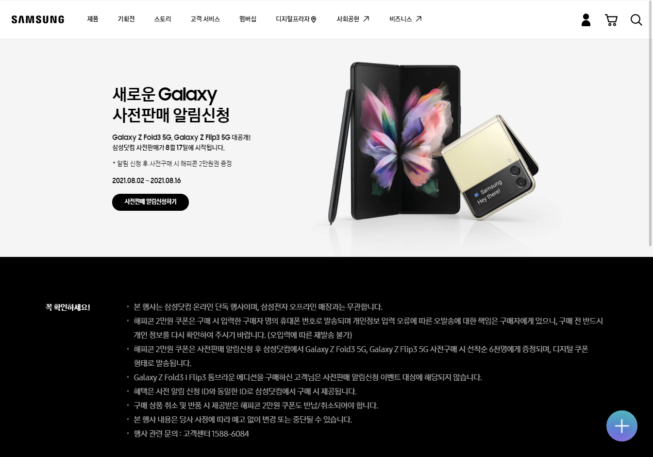 삼성닷컴 새로운 Galaxy 사전판매 알림신청하기 - Samsung