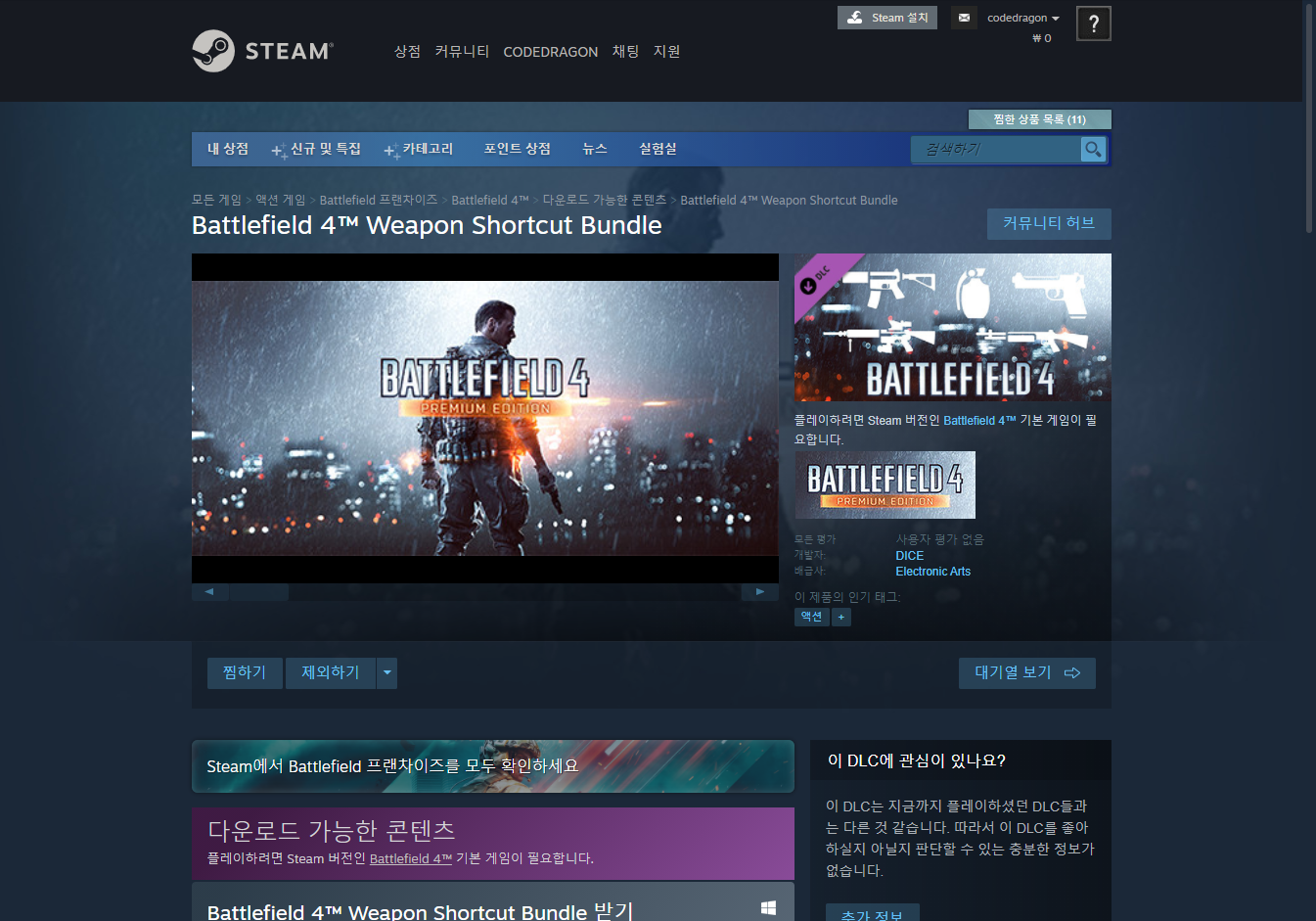 - Battlefield 4™ Weapon Shortcut Bundle DLC 페이지