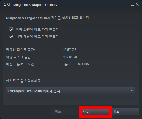 스팀런처 실행이 끝나면 원하는 위치에 설치를 완료해 줍니다.