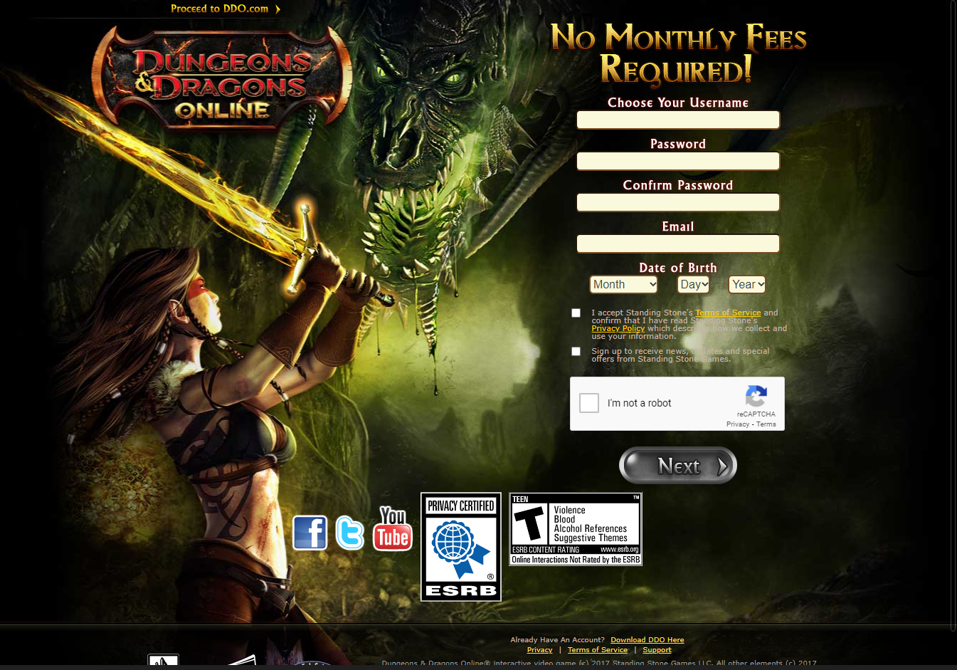 "Dungeons & Dragons Online" 공식 페이지