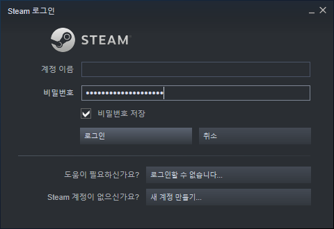 Steam 런처가 실행되고 스팀 계정으로 로그인합니다.