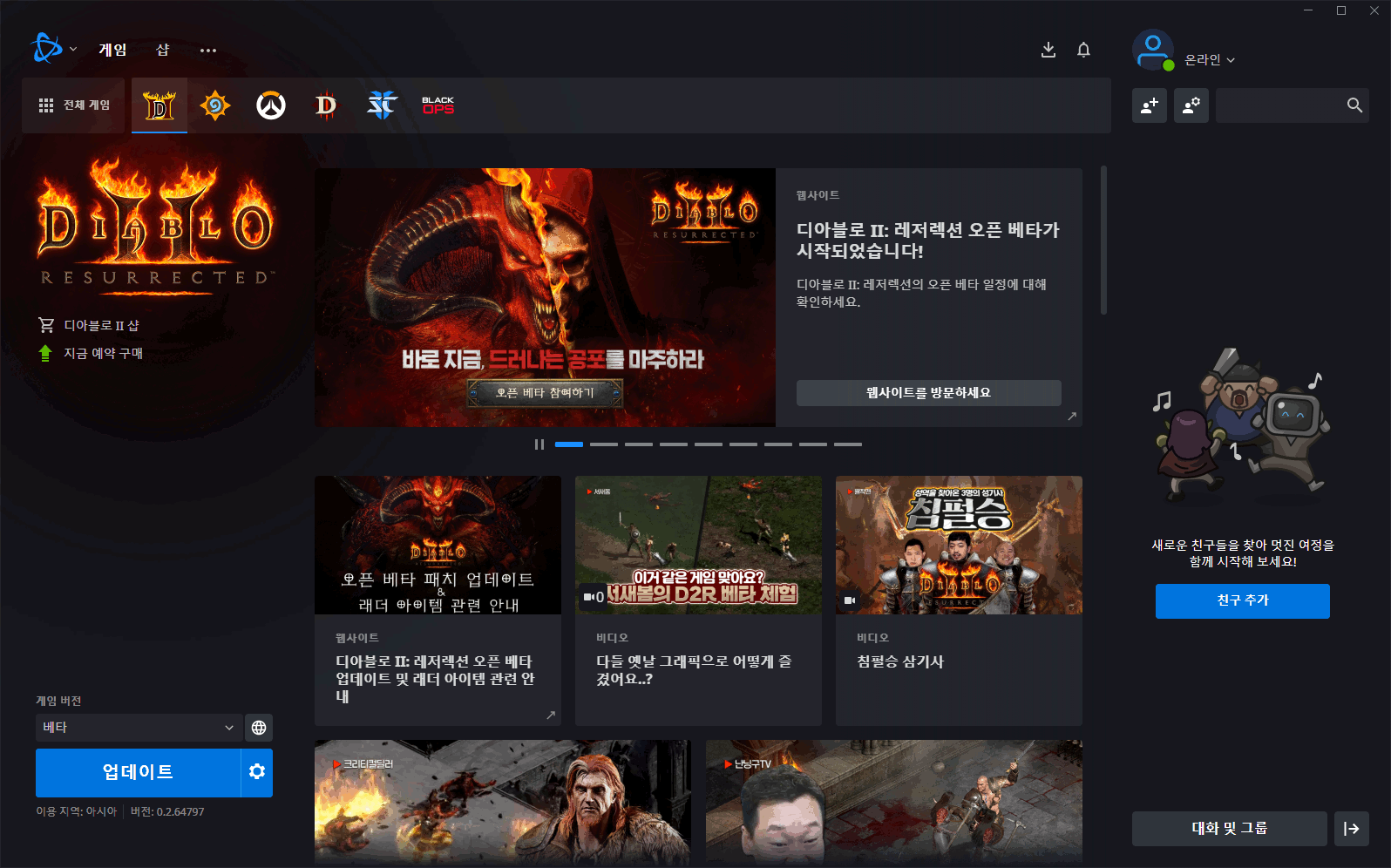 디아블로2 리저렉티드 게임 설치 및 실행하기, 디아2 오픈베타 Diablo II: Resurrected Free Access Open Beta