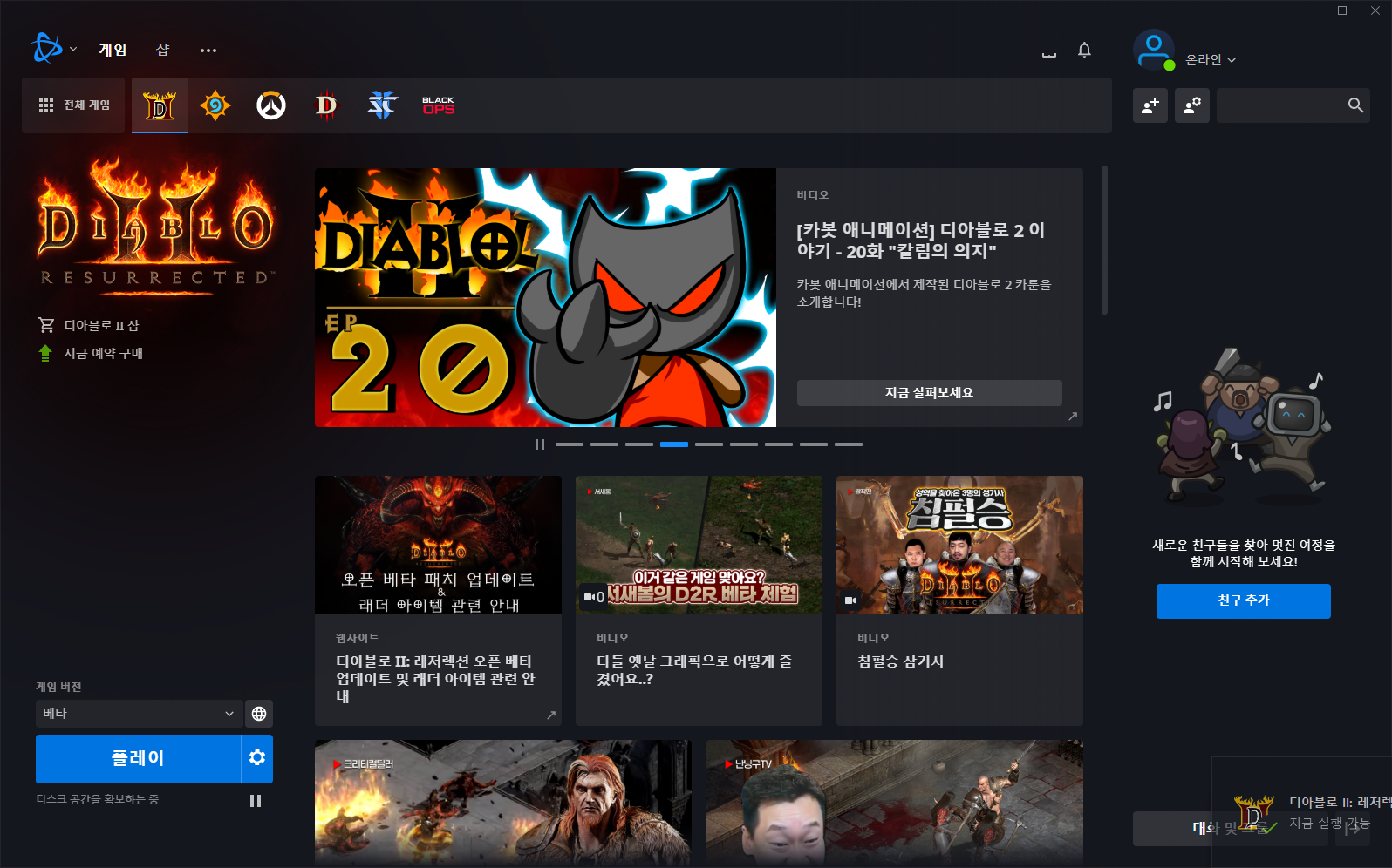- D2R 베타 게임 설치
