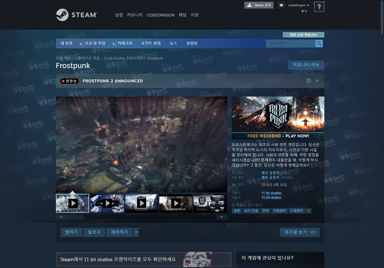 Frostpunk 프로스트펑크 - Steam 스팀 금주 무료 플레이 Play for Free weekend on Steam 스팀