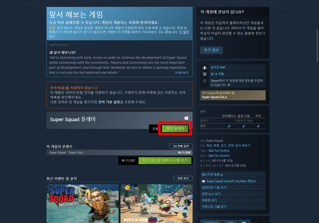 "Super Squad" 게임 페이지 - Steam 스팀