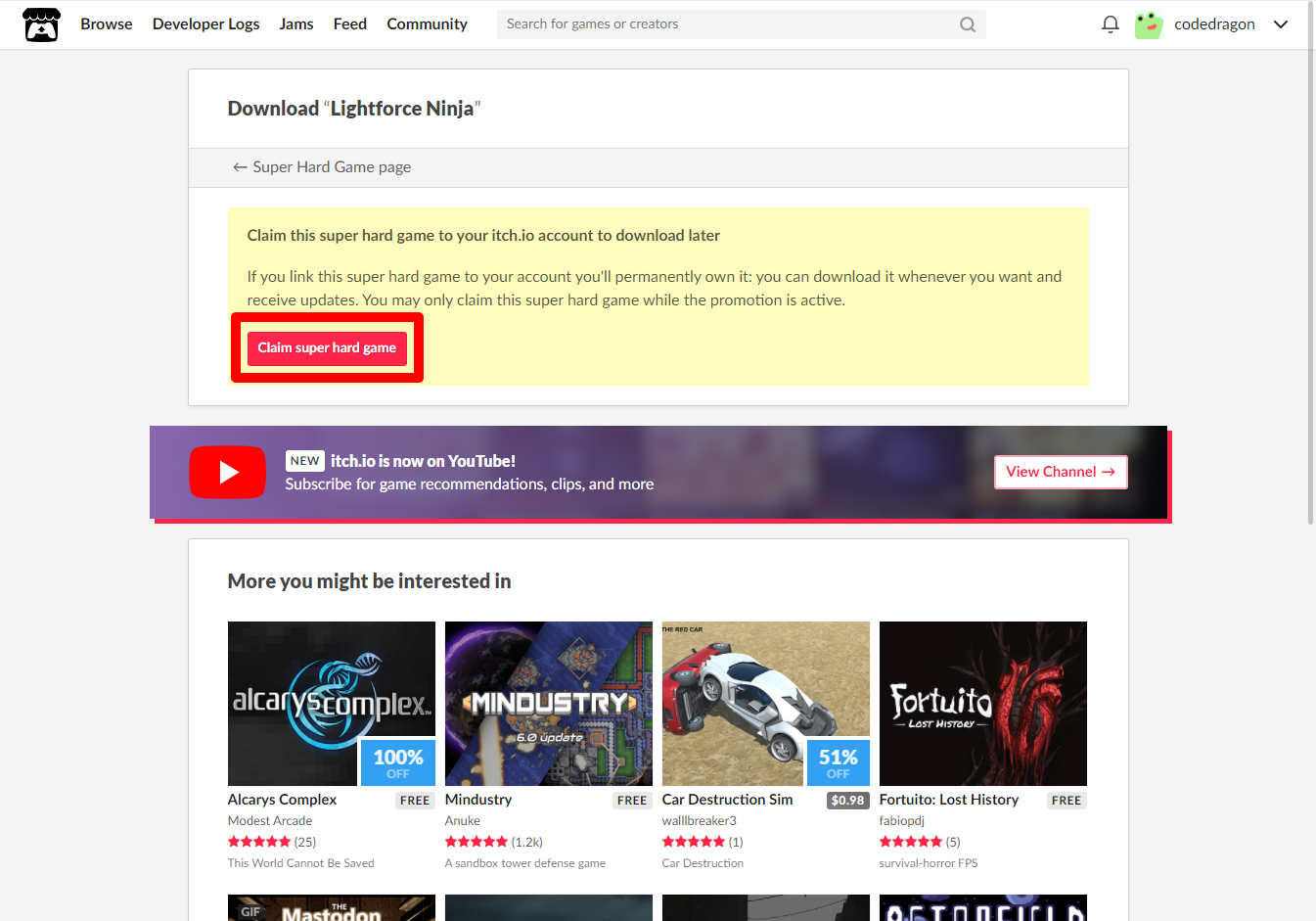 [Claim super hard game] 클릭합니다.
