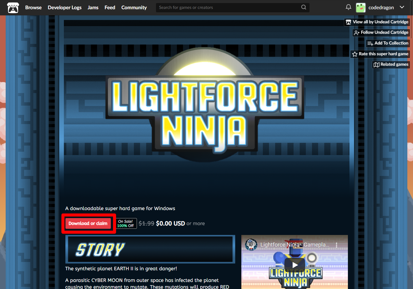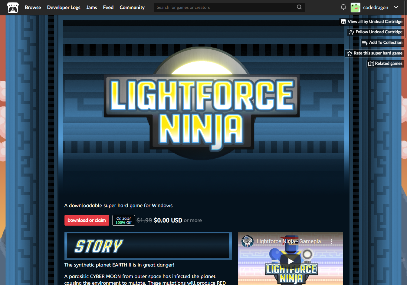 LIGHTFORCE NINJA 라이트포스 닌자 무료로 받기 - itch.io 잇치 닷 아이오 한시적 무료 소장하기