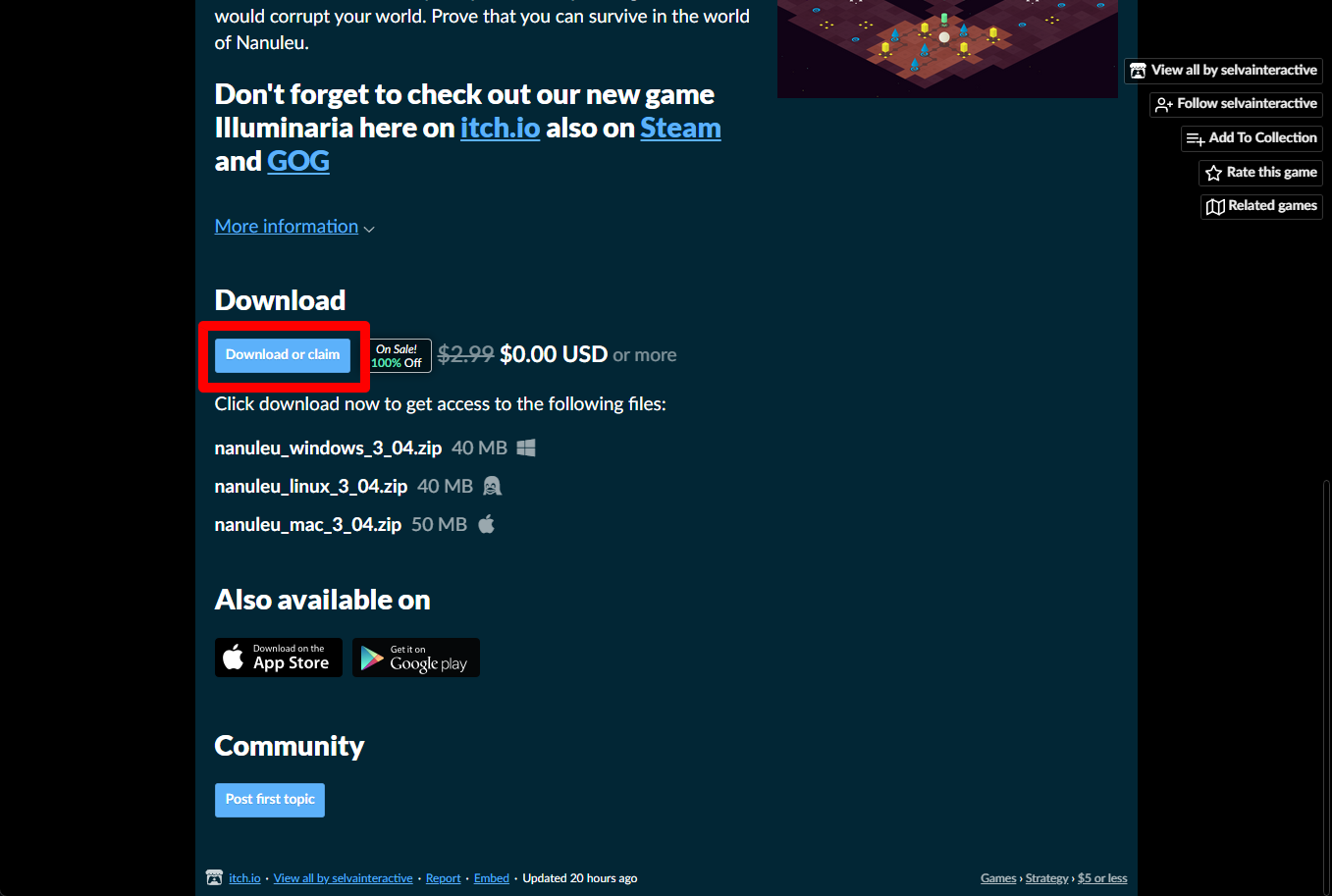 "Nanuleu" 페이지를 내려서 [Download or claim]을 클릭합니다.