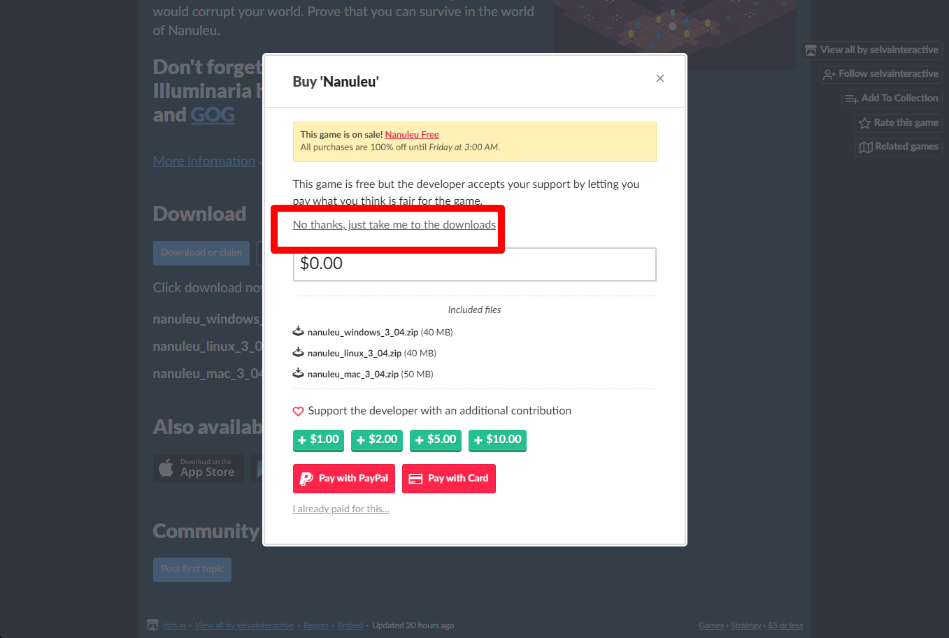 "Nanuleu" 구매창에서 [No thanks, just take me to the downloads] 링크를 클릭합니다.
