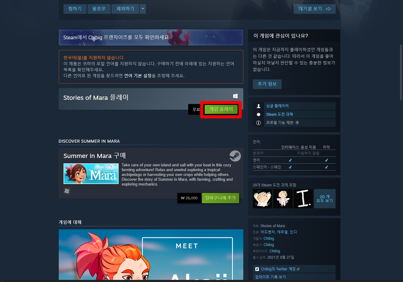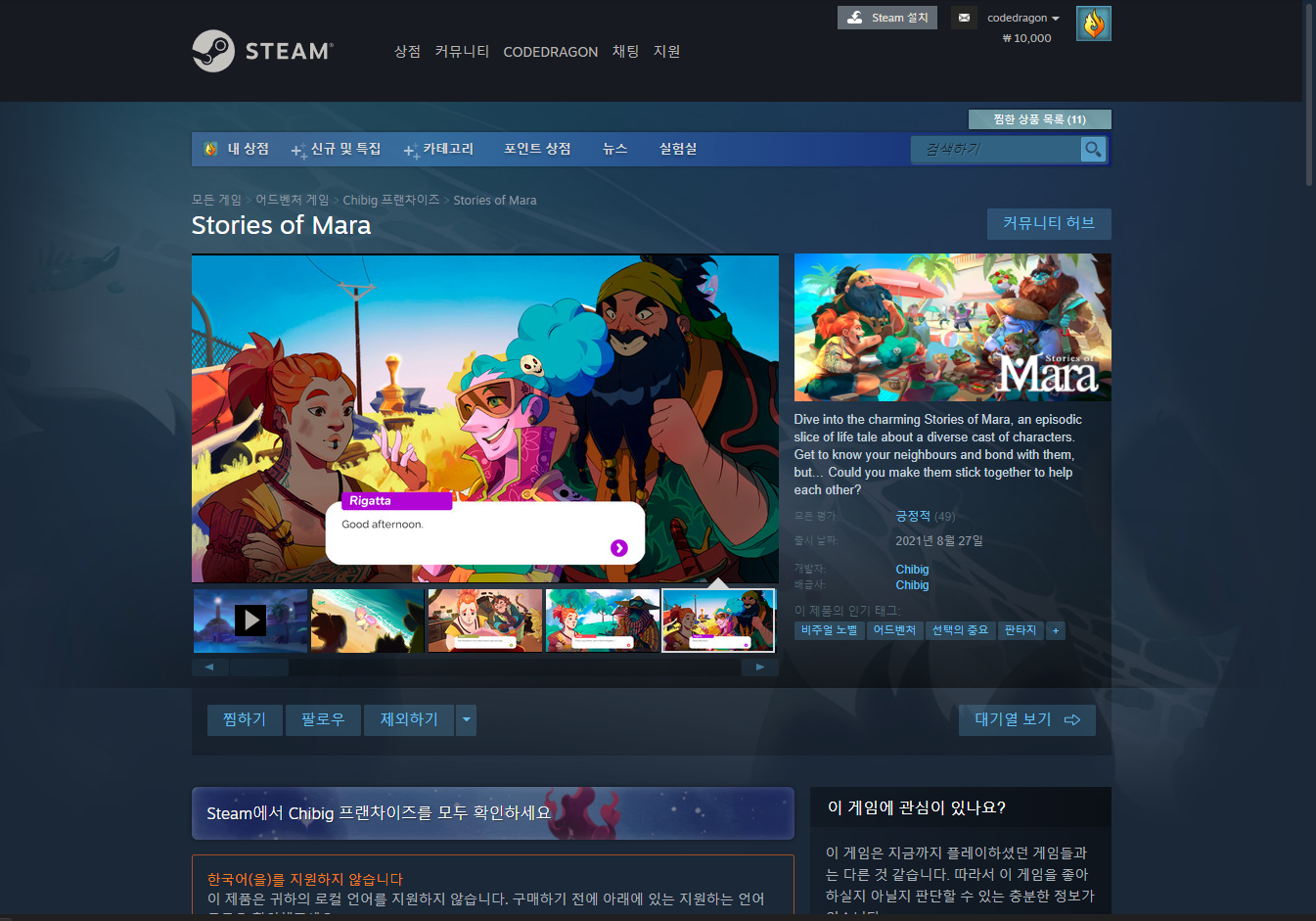 "Stories of Mara" 스팀 페이지 입니다.
