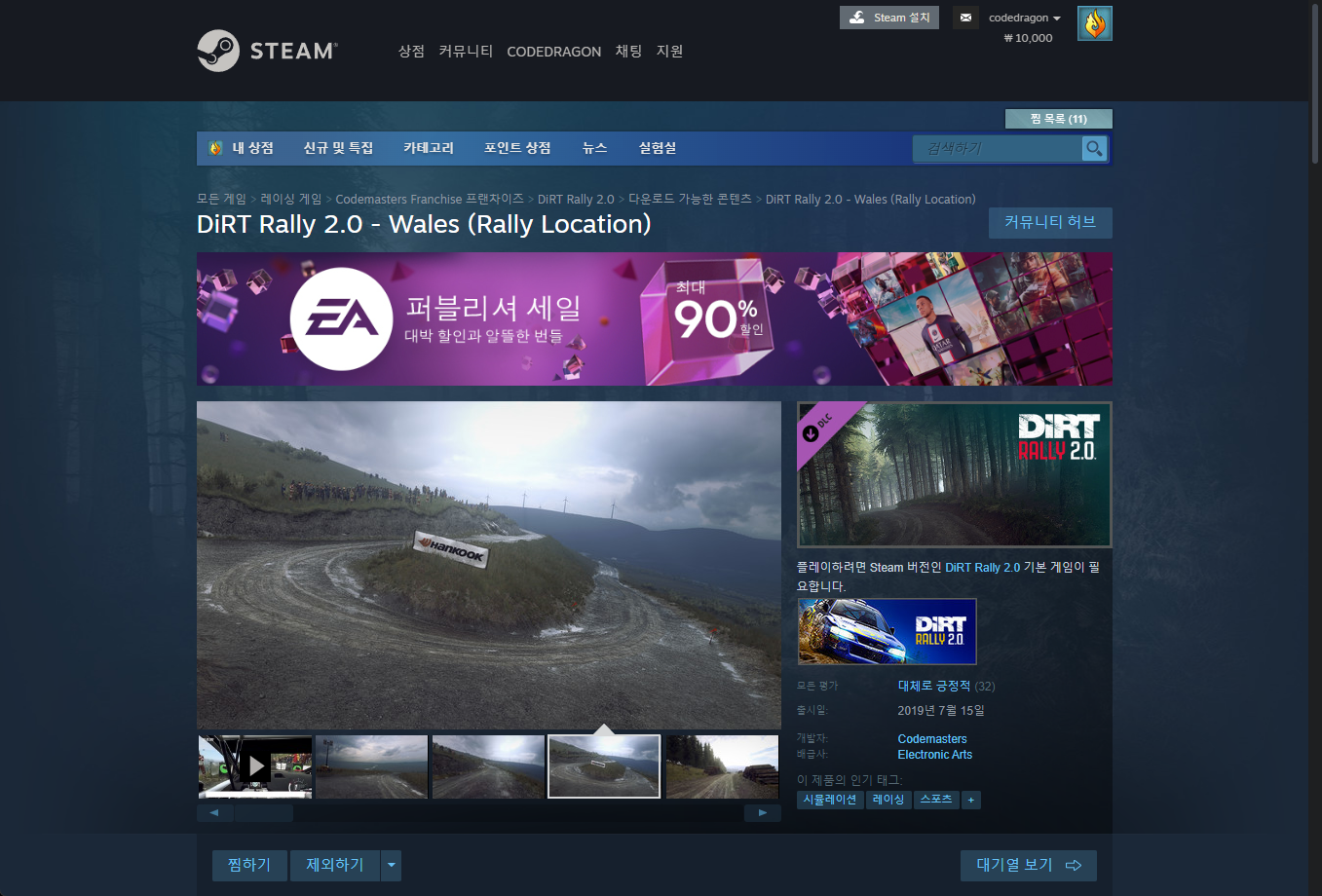 "DiRT Rally 2.0 - Wales (Rally Location)" DLC 게임페이지에 접속합니다.