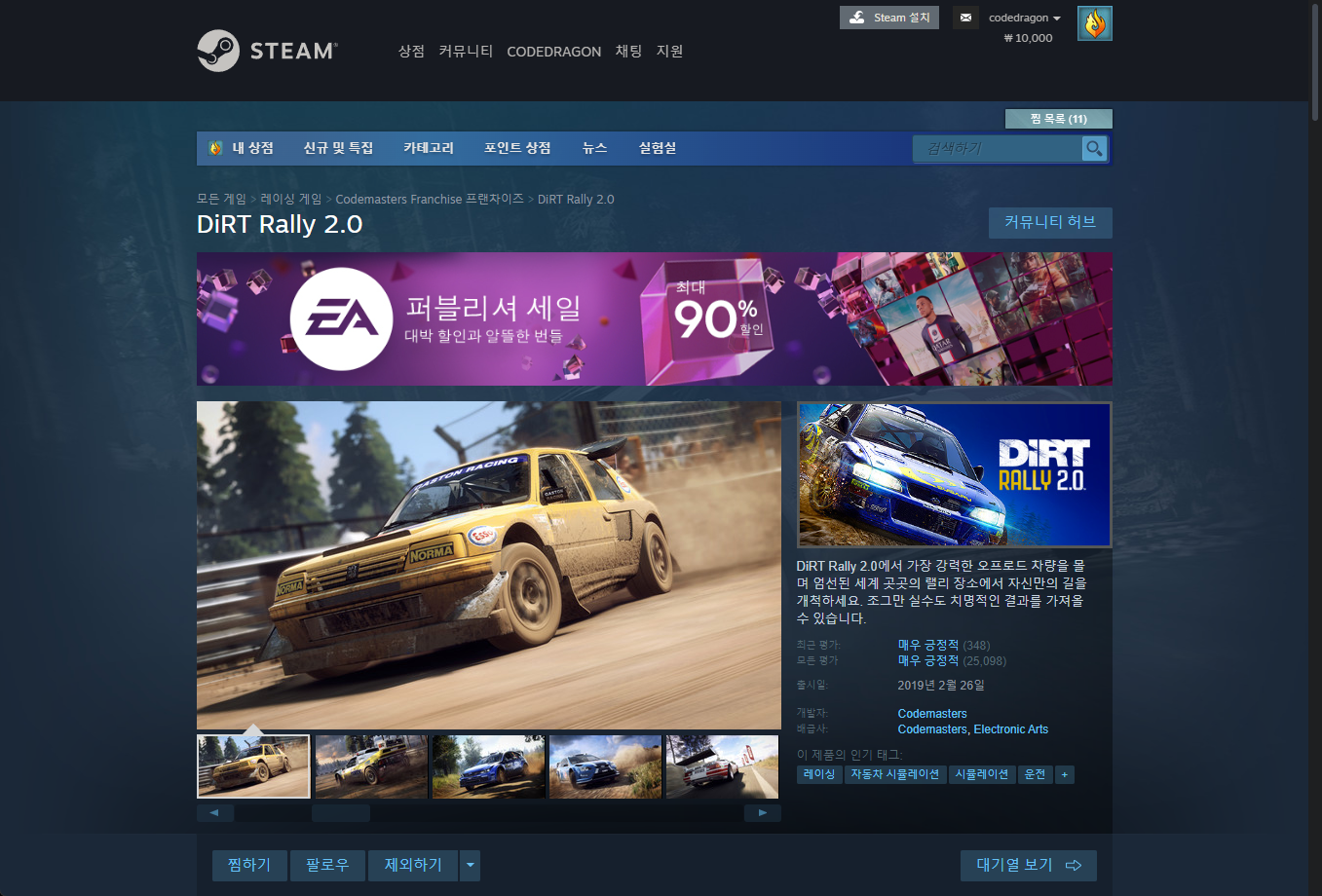 "DiRT Rally 2.0" - 게임 페이지 (base game)