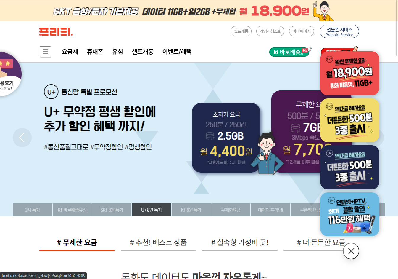 알뜰폰, 알뜰요금제, 유심요금 사이트 모음 - USIM, 무약정
