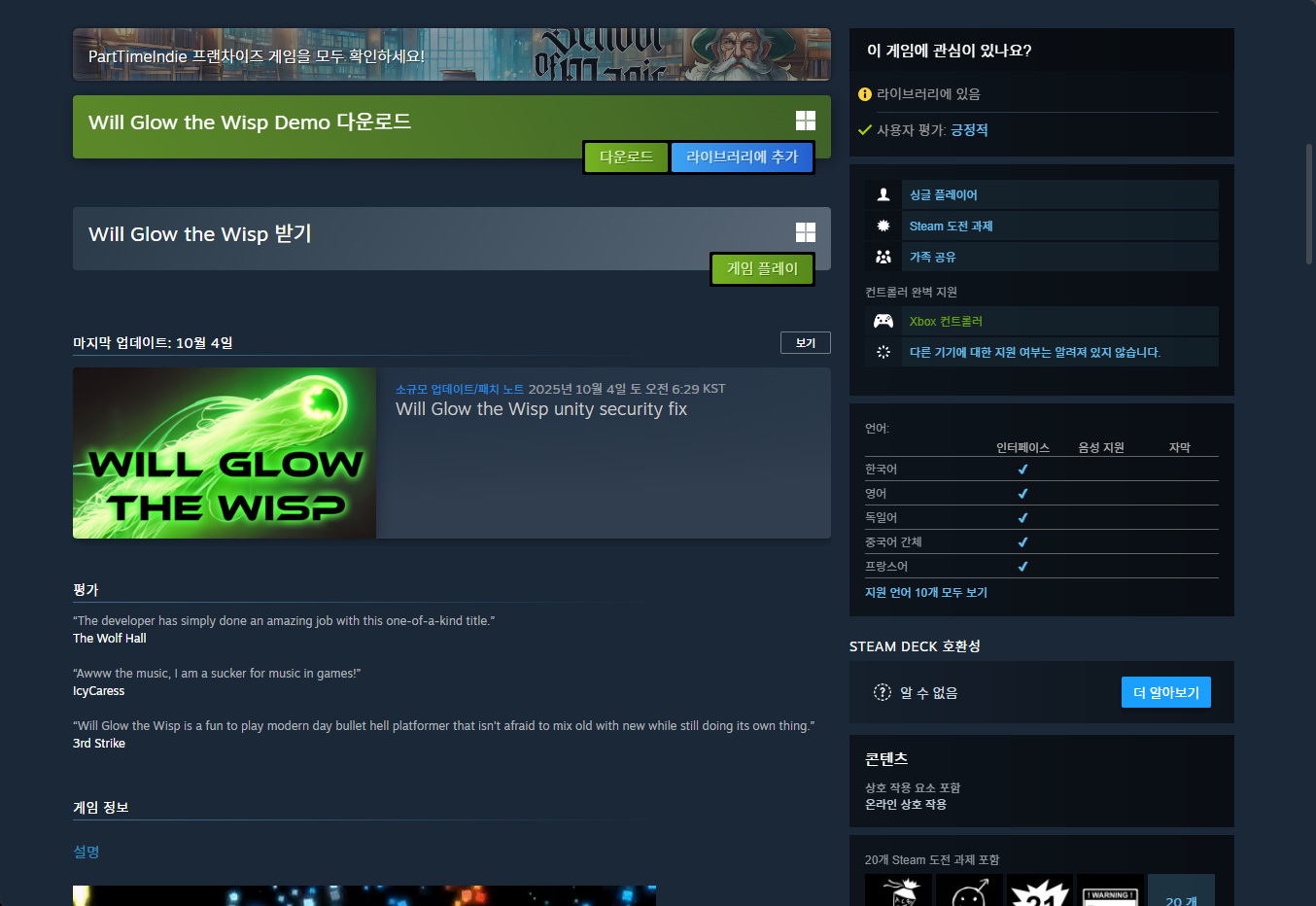 ₩2,300 → ₩0(FREE) Will Glow the Wisp (윌 글로우 더 위스프) 무료로 받기; 스팀 Steam 한시적 무료 Get free copy