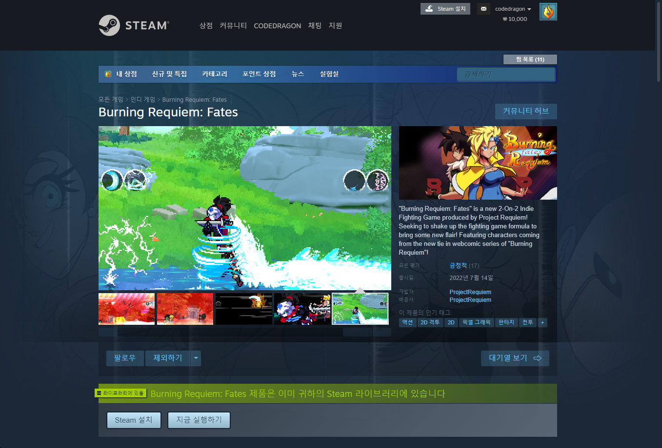 "Burning Requiem: Fates" 스팀 페이지 입니다.