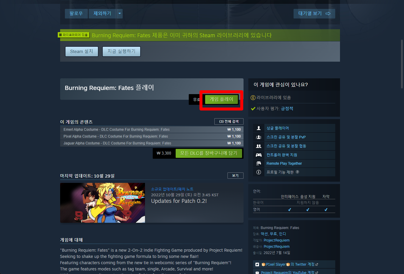 - "Burning Requiem: Fates" 게임 보유 확인