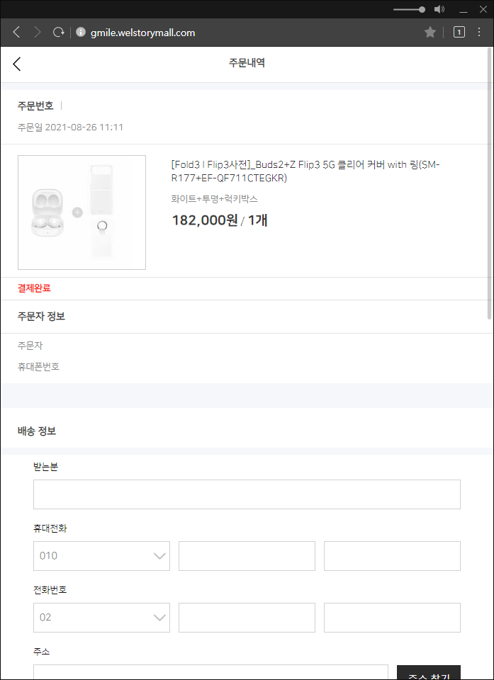 | Galaxy Z Flip3 / Fold3 5G 사전 구매하기, 사전판매, 주문/배송 조회, 제품 수령, 배송완료 (0) | 2021.08.24 |