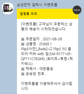 | Galaxy Z Flip3 / Fold3 5G 사전 구매하기, 사전판매, 주문/배송 조회, 제품 수령, 배송완료 (0) | 2021.08.24 |