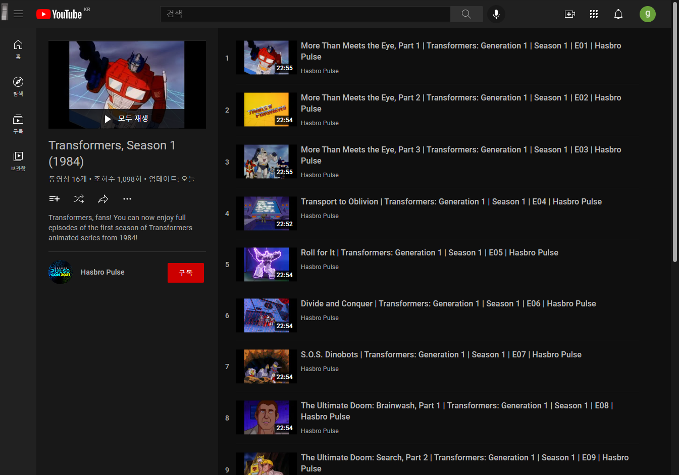 Transformers, Season 1 트랜스포머 시즌 1(1984) - 고전 애니매이션