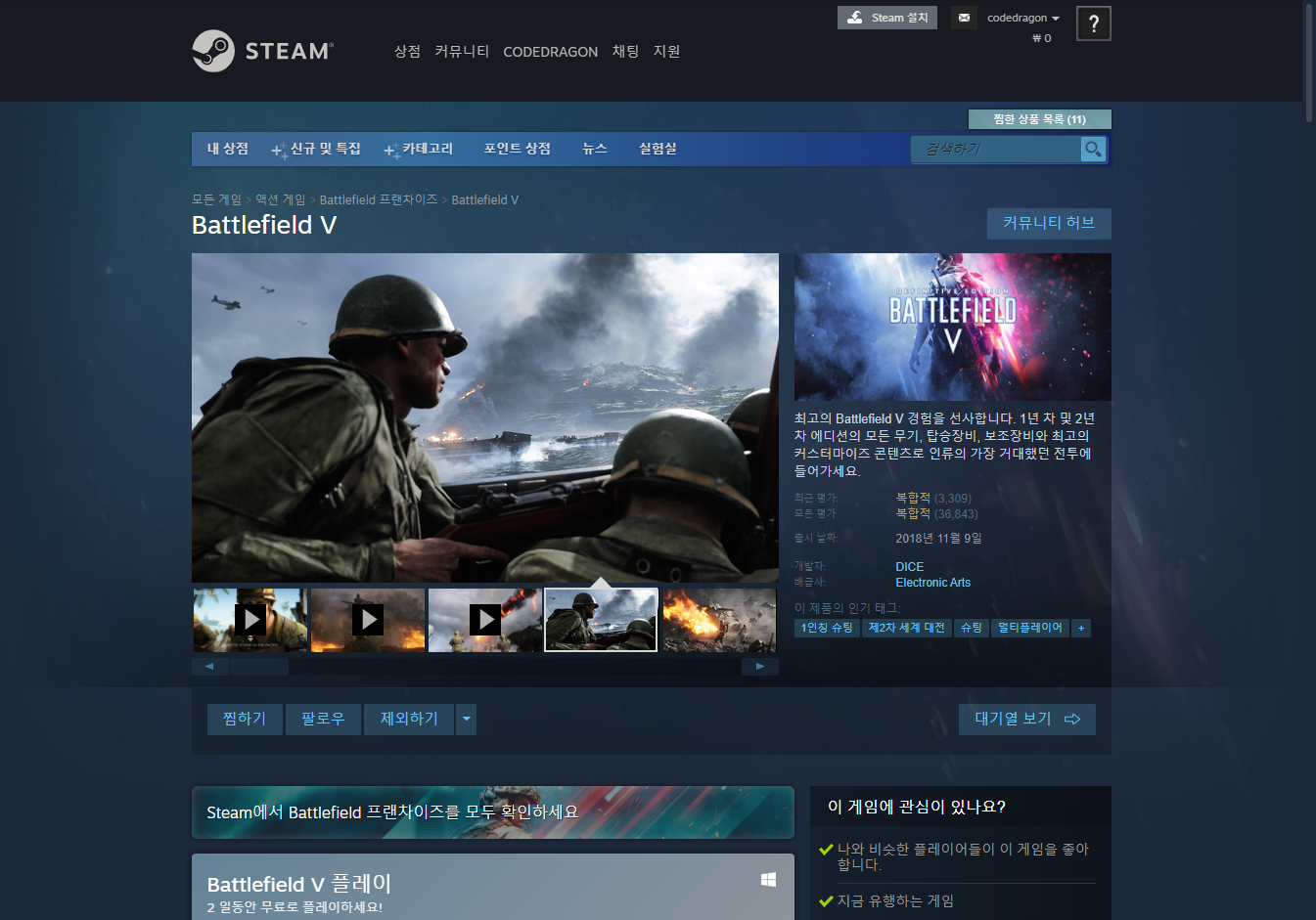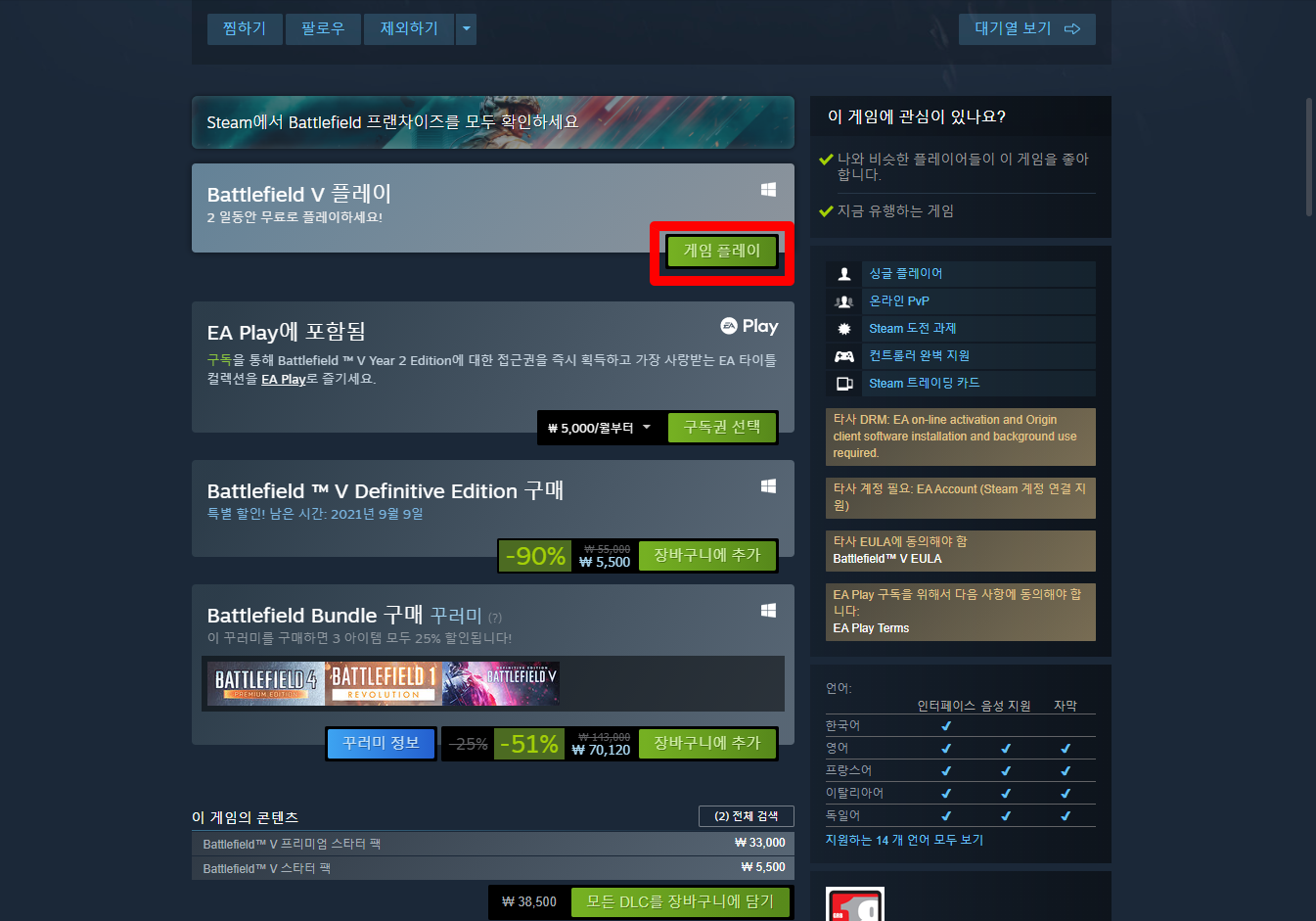 Battlefield V 배틀필드 5 - Steam 스팀 금주 무료 플레이 Play for Free weekend on Steam 스팀