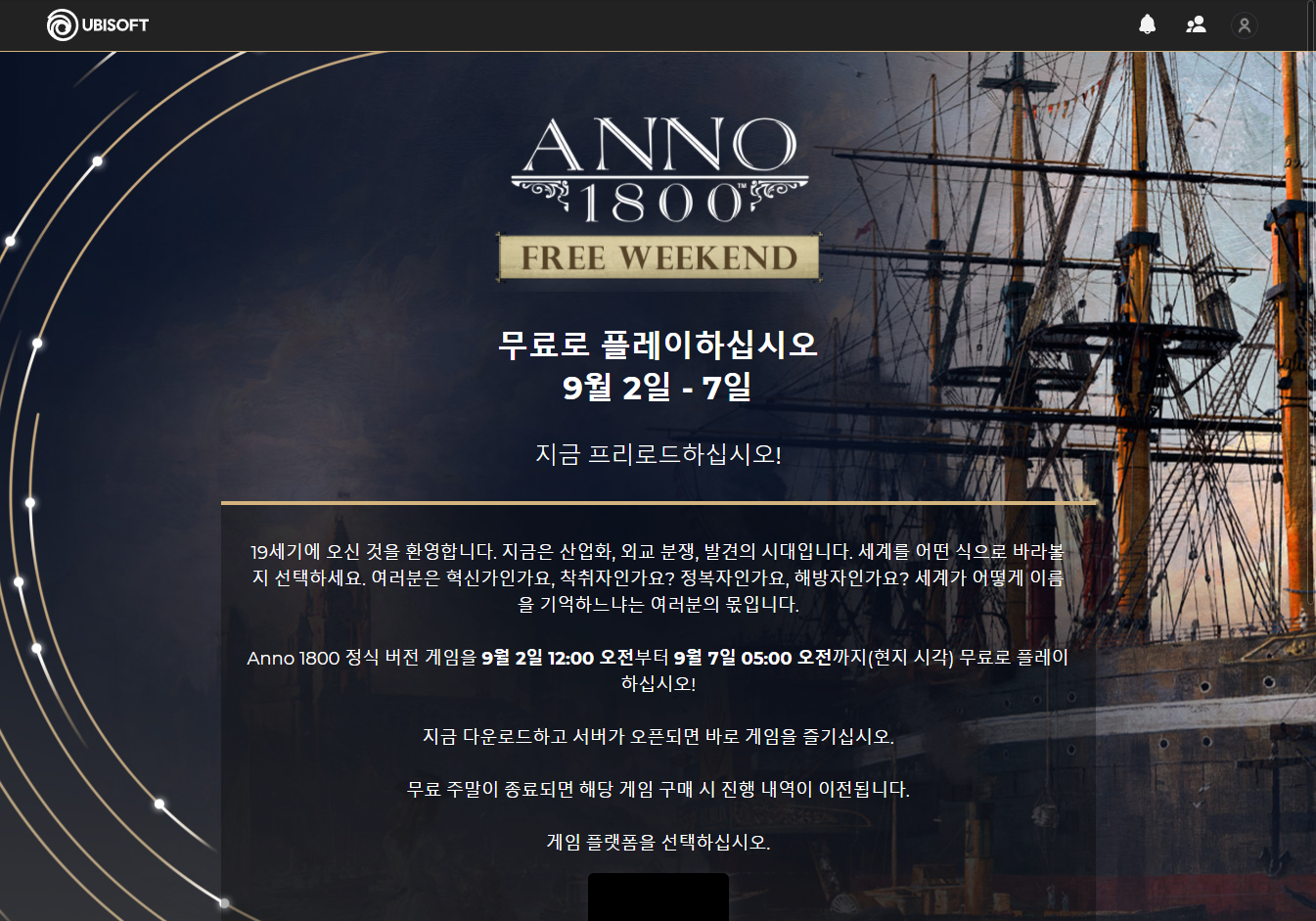 Anno 1800 아노 1800 금주 무료 플레이 Play for Free weekend on Ubisoft 유비소프트, Epic 에픽