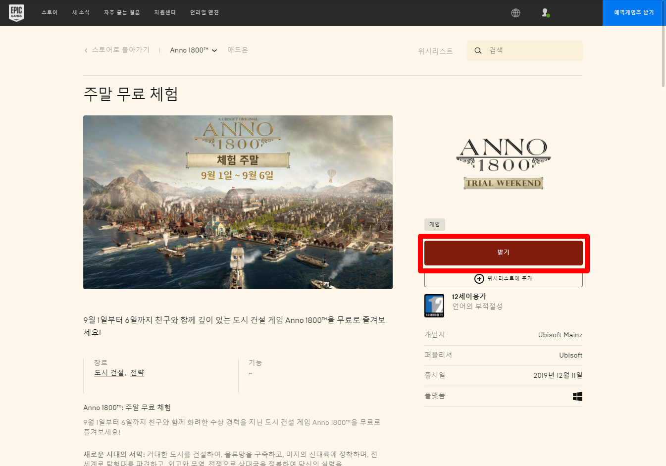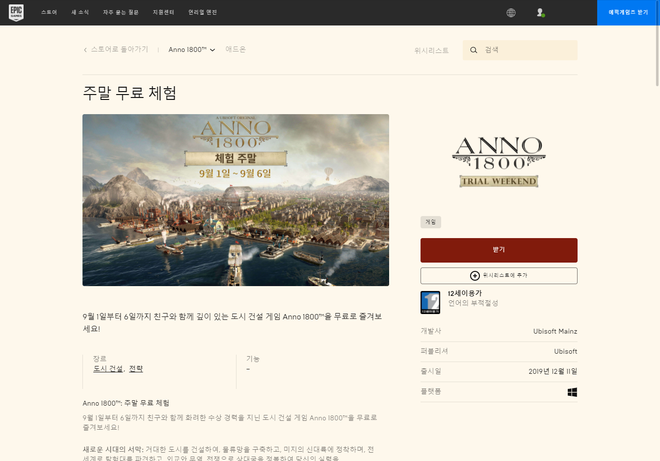 Anno 1800 아노 1800 금주 무료 플레이 Play for Free weekend on Ubisoft 유비소프트, Epic 에픽