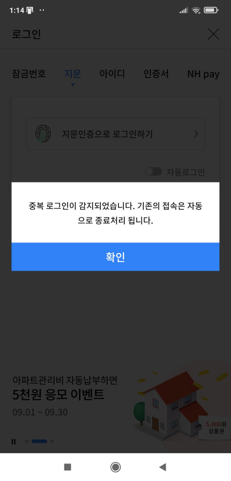 계정보호를 위해 다른 장치에 로그인되어 있는 것이 있다면 이전에 로그인된 것은 로그아웃됩니다.