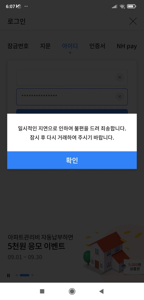 죄송합니다 고객께서 입력하신 이용자ID는 장기 미상요자가 아닙니다. 확인하신 후 거래하시기 바랍니다. [EACO03400(EACO03400)/16.83-04]
