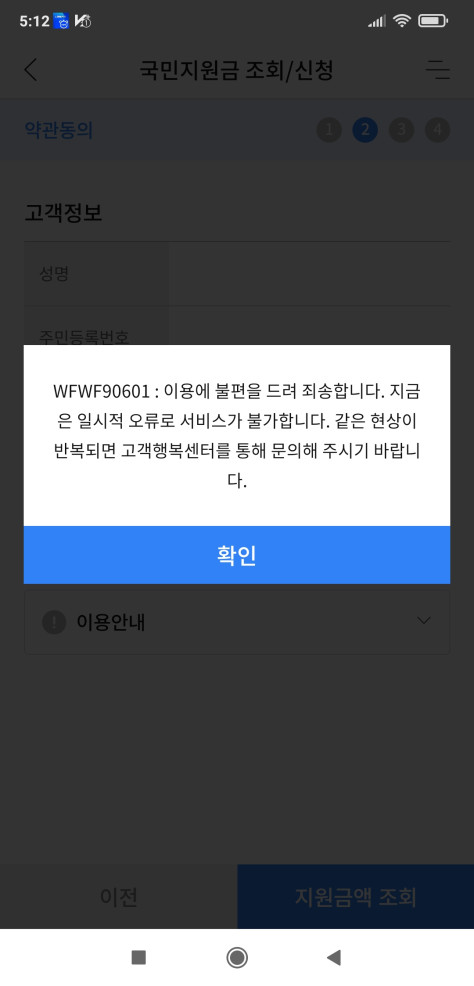 입력하신 생년월일과 성별을 다시 확인하여 주시기 바랍니다.