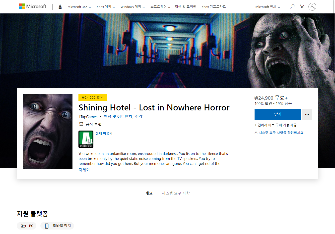 - "Shining Hotel - Lost in Nowhere Horror" 무료 제공 페이지