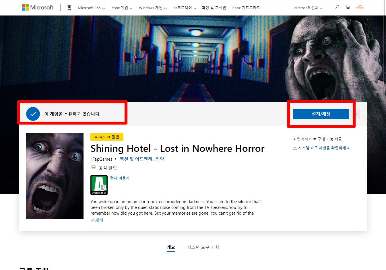 게임페이지에 "이 게임을 소유하고 있습니다"라고 표시되어 가지고 있는 게임항목임을 알 수 있습니다.