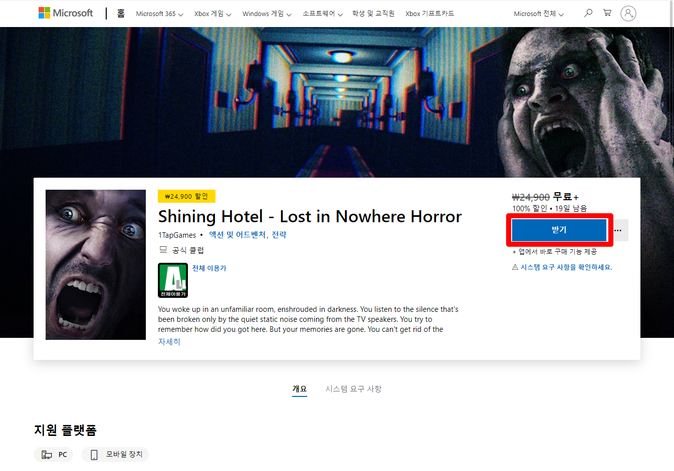 - "Shining Hotel - Lost in Nowhere Horror" 무료 제공 페이지