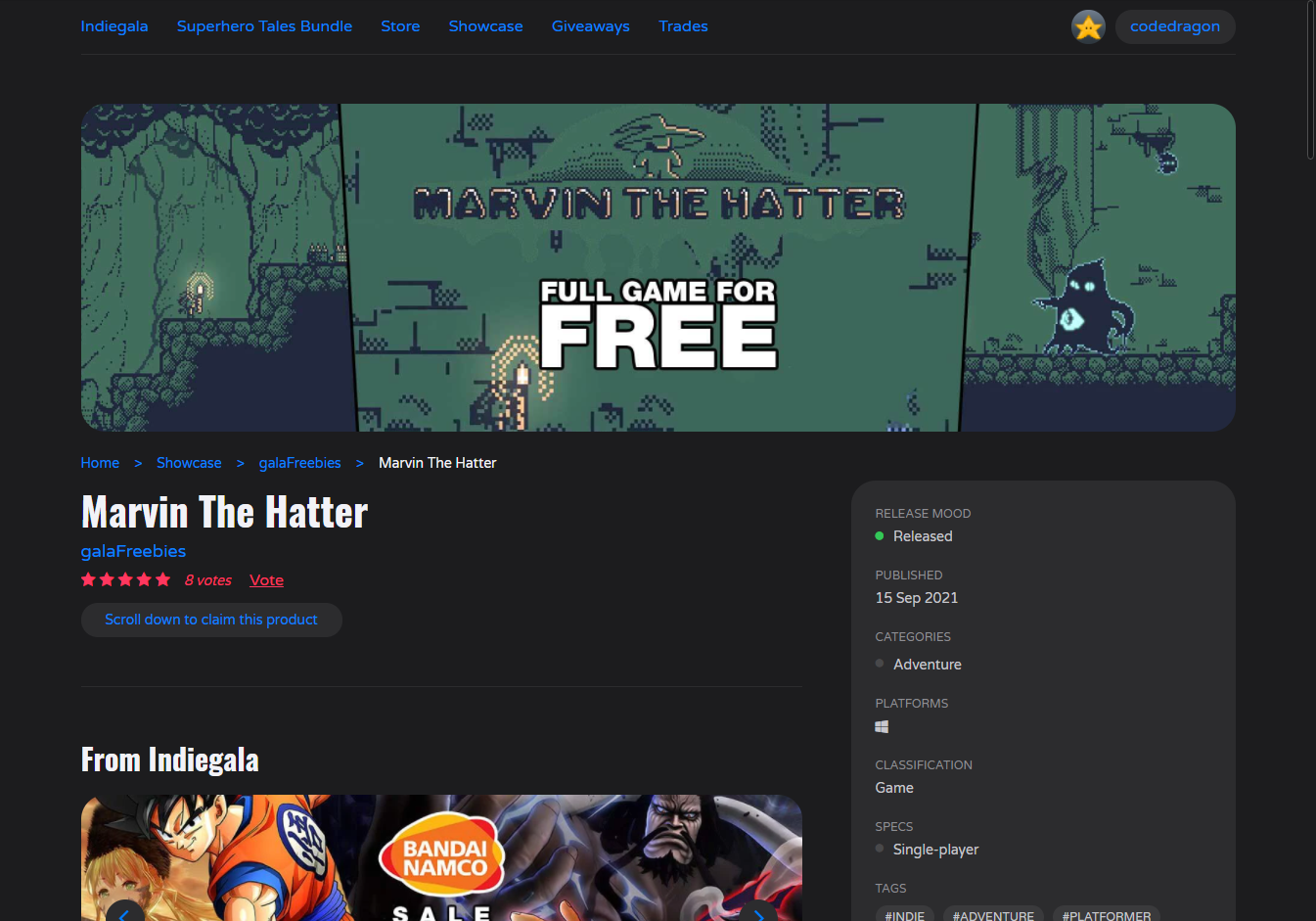 Marvin The Hatter 마빈 더 해터 ₩ 2,200 -> ₩0 무료 - 인디갈라 indiegala 무료 소장 기회 기간한정 indiegala FREE GAME, Limited time