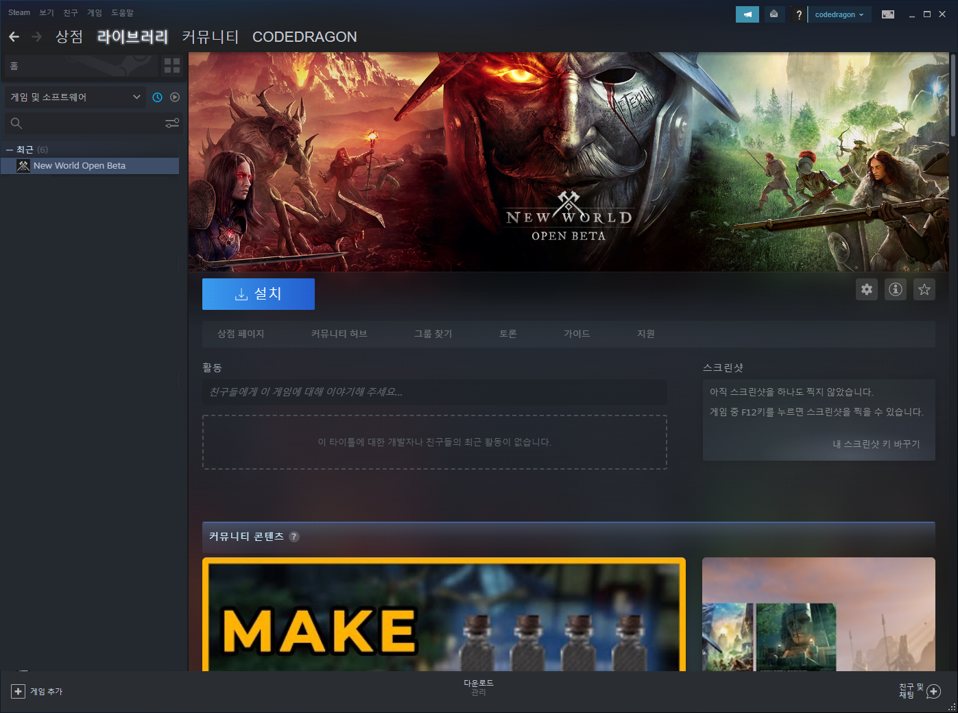 [설치] 클릭해서 설치완료 후 플레이하면 됩니다.