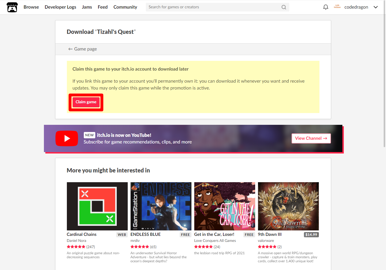 itch.io 잇치 닷 아이오 계정이 없다면 이전 영상 확인하시기 바랍니다.