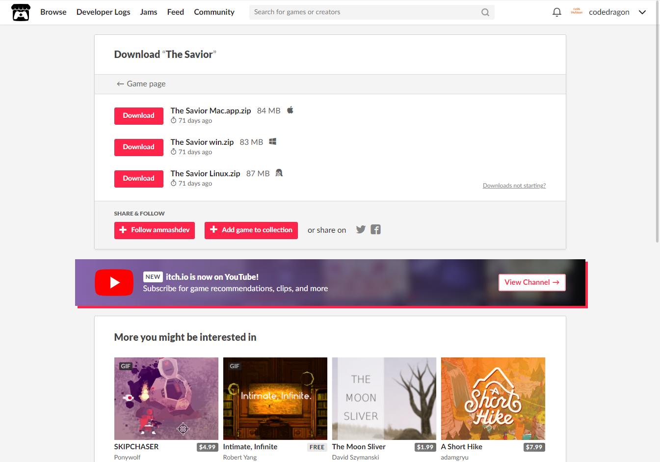 ₩2,344 -> ₩0 The Savior 무료로 받기 영구소장 - itch.io 잇치 닷 아이오 한시적 무료 소장하기